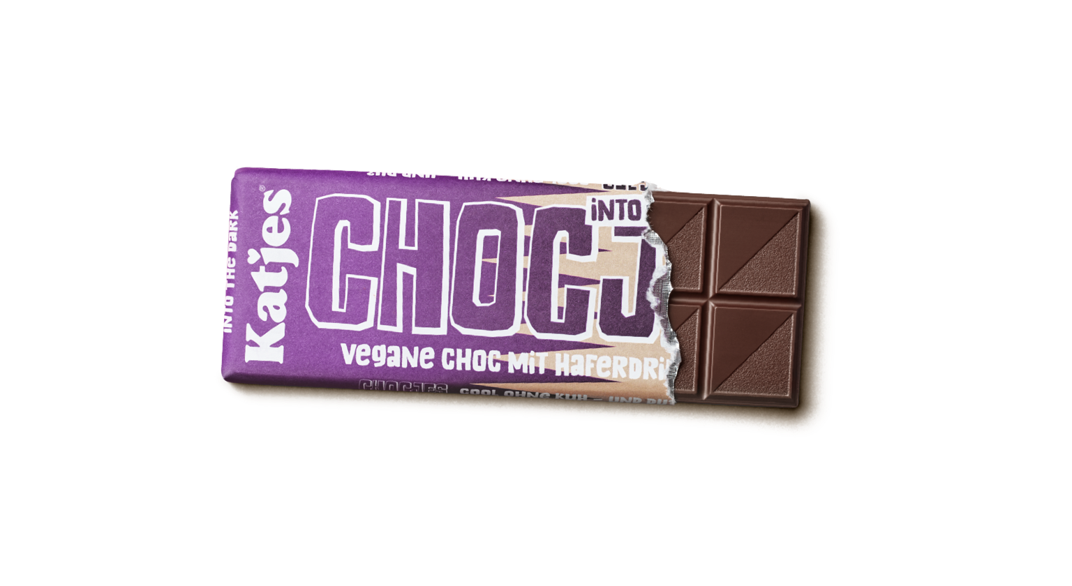 Do you love dark chocolate? Then let your taste buds in for a real treat with our CHOCJES Into the Dark. This delectably well-rounded dark chocolate is not only 100% vegan, but also has a richly intense taste thanks to at least 70% cocoa solids. CHOCJES is woo-hoo, no moo – because it’s made with oat milk, not cow’s milk. And when it comes to being environmentally friendly, our Katjes CHOCJES is far superior to other plant-based milk alternatives such as soy milk or almond milk. Get on it! End of story. Away you go!